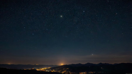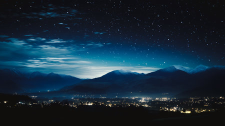 Night city and distant mountains starry sky scene