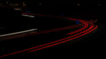 lights of cars with night. long exposure, light lines on the road