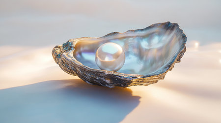 Shell holding a precious pearl, symbolizing natural beauty and serene tranquility