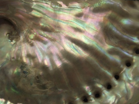 Detail showing close up macro shot of iridescent abalone shell concentric rings and texture keywords:...