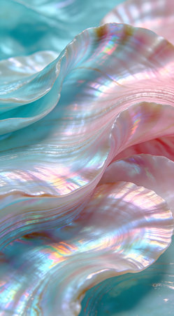 Captivating digital artwork with iridescent wave motifs inspired by abalone shells, featuring fluid turquoise-to-pink color shifts, soft rainbow illumination, and a premium oceanic vibe. Suited for luxury product packaging, upscale interior decor, fashion fabric designs, and marine wellness branding. Offers elegant texture and versatile appeal for commercial ... AI-generated digital illustration. AI-generated illustration.