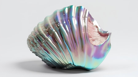 Iridescent Seashell on a Vibrant Gradient Background. Generative AI.