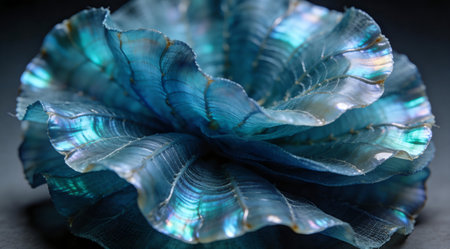 Elegant digital artwork featuring iridescent sheen and layered macro textures with dynamic rainbow lighting, evoking a luxurious oceanic jewel atmosphere through shifting blues and greens. Perfect for premium branding, jewelry design, high-end packaging, fashion graphics, and interior decor accents. Versatile asset for creative professionals in luxury markets... AI-generated digital illustration. AI-generated illustration.