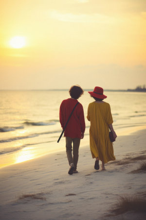 portrait of happy Japanese teens relaxing on Okinawa beach. ai generated