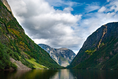 Naeroyfjord taken from a ferry ride. The narrowest of the Songne fjord in Norway.