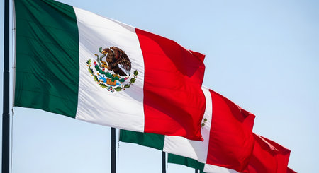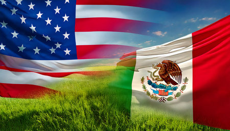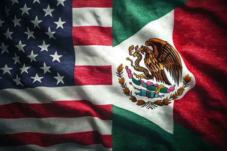 Symbolic Display of Unity Between USA and Mexico, Featuring National Colors in an Elegant Design