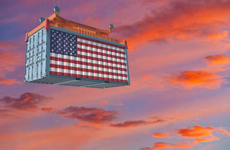 Import Trade Tariffs increase concept with United States of America Flag. Trade wars