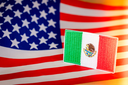 United States vs. Mexico. Business and Trade International Relations Mexican and American National Symbols. close up