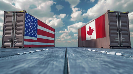 Visual Metaphor North American Trade Tensions US Mexico Canada Tariff War Cargo Containers Economic Strife