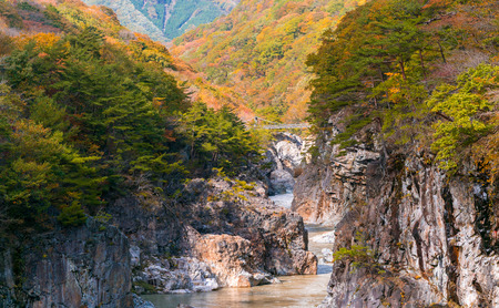 Nagato Gorge in autumn with beautiful autumn leaves and valley