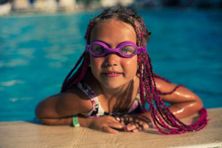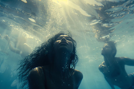 Young people in a pool summer vacation swimming fun swimwear diving freedom happiness relaxation goggles leisure activity hot weather warm comfy water excitement refreshing spa