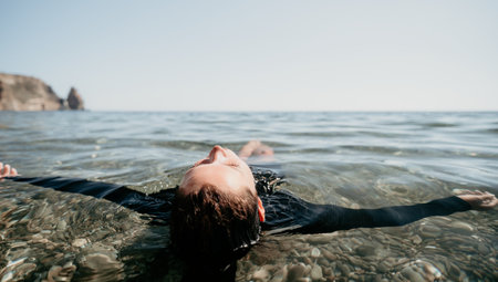Person, Water, Relaxing - Person relaxes in the water on a sunny day.