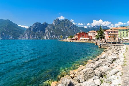 View of the Limone Sul Garda town on the shore of Lake Garda, Italy