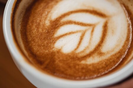 Close-up A cup of hot latte coffee on a wooden table for breakfast that needs enthusiasm.