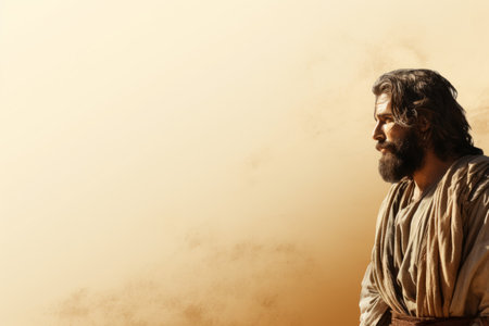 Digital portrait of Jesus Christ, created by AI, representing the son of God with an expression of love and salvation,