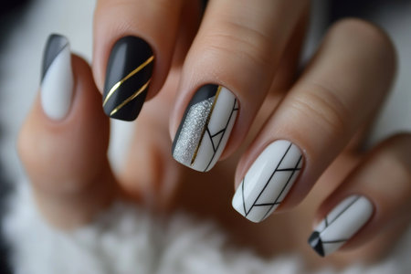 Simple and Elegant Nail Designs with Neutral Tones and Geometric Accents