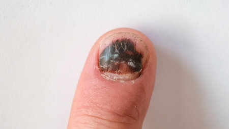 close-up of big toe with Subungual hematoma. Healthcare, pain.