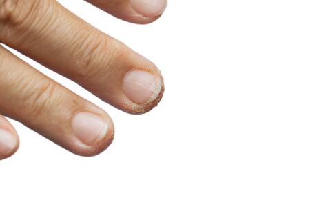 A man's hand with bitten and ugly fingernails. Bad care of hands