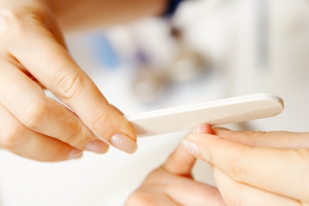 Close up photo of woman doing manicure with nail file