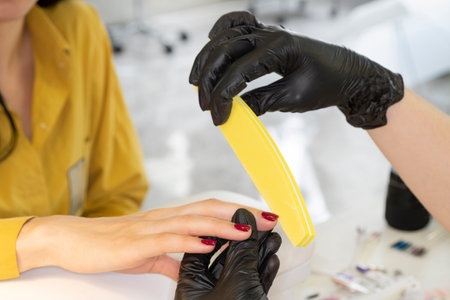 manicurist uses a manicure nail file to process the nail plate and nail file