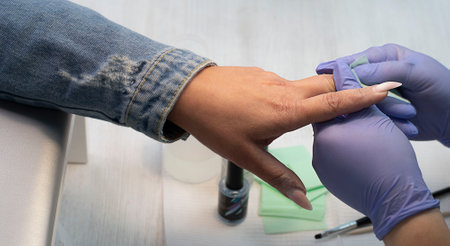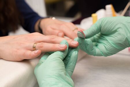Manicurist workflow with client's nails. Nail care, manicure