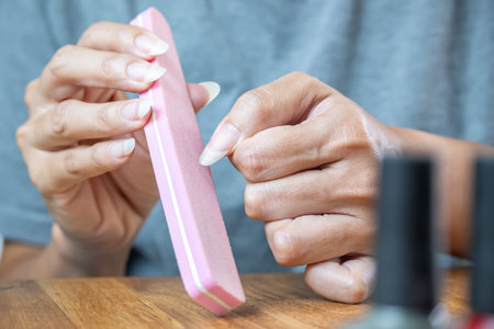 Woman using a nail file for nail care