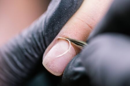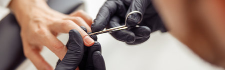 Detail of nail cutting with pliers during a manicure treatment in a beauty salon. Concept manicure, nails, beauty. Selective focus.