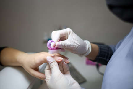 The process of manicure in a beauty salon close-up
