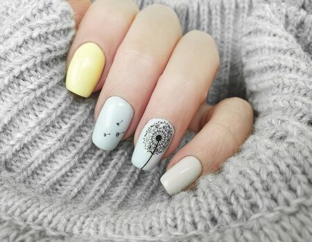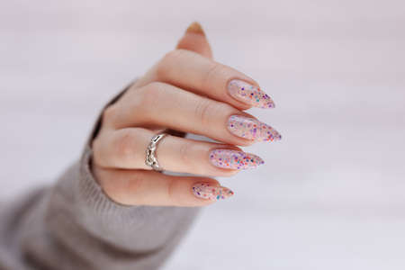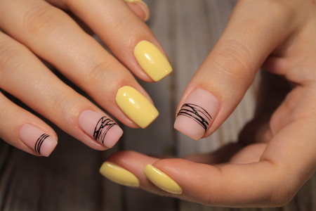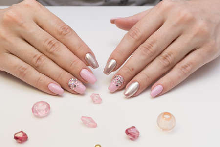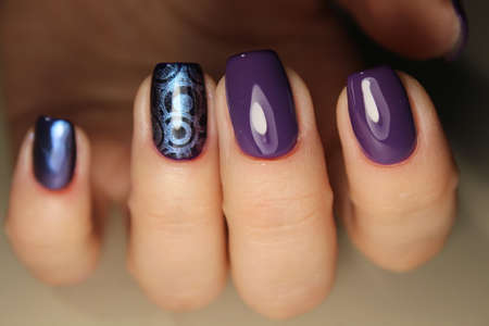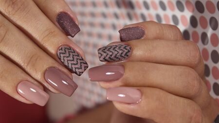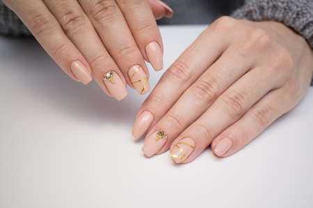 Amazing manicure and natural nails with gel polish. Attractive modern nail art design.