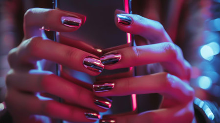 Womans hands with matte lavender and silver nails. Beauty treatment