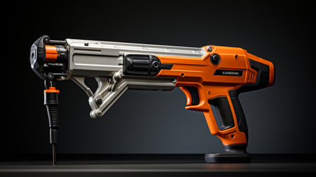 3d rendering of a powerful electric screwdriver on a gray background