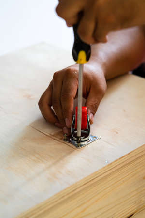 Fixing castor wheel to the wooden plywood, furniture making.
