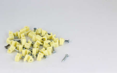 Dowel nails for apartment renovation.Scattered,with empty space, with space for text