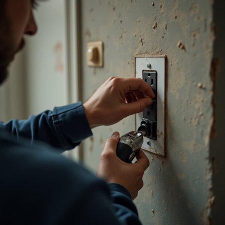Male hand changing socket, checking it with mains tester