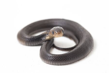 The Baby Javan spitting cobra (Naja sputatrix) also called the southern Indonesian cobra, or Indonesian cobra. isolated on white background