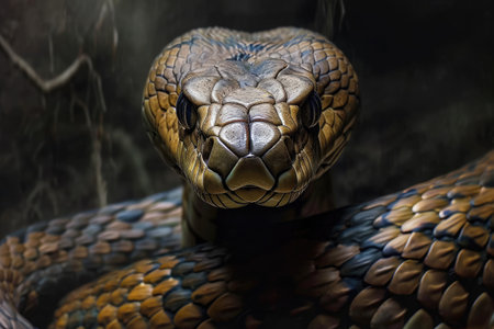 Close-Up of a Snakes Head, A frightful, yet captivating illustration of the venomous king cobra, AI Generated