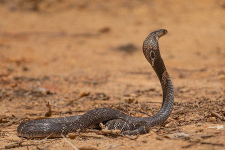 Venomous snake ready to strike in the arid desert wilderness, showing signs of aggression