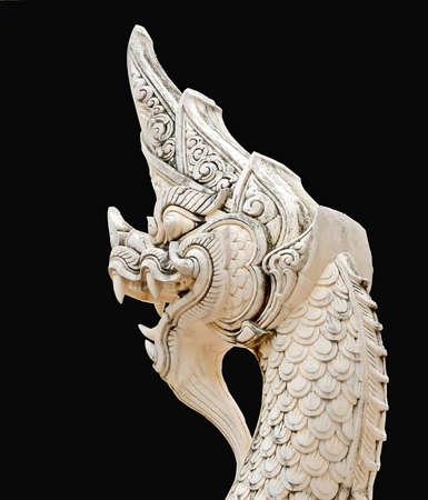 Ancient statue of mythical asian naga snake, Cambodia. Old Sculpture of a fantastic serpent. Isolated on white background