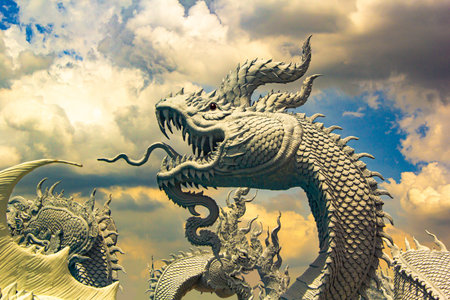 Thai style dragon statue in Thai temple, Thailand. (Selective focus)