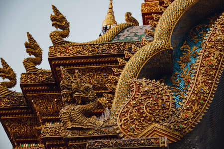 beautiful details of Thai fine arts at Buddhist temple. beautiful new temple near Chiang Mai, Thailand