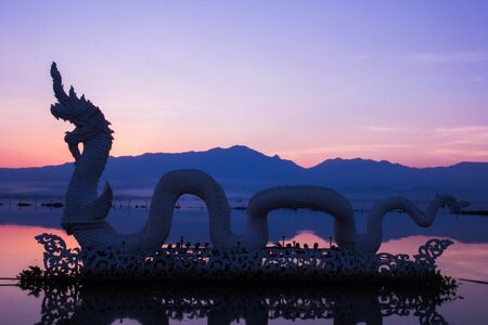 statue king of nagas in front of buddhism temple, Chiangmai Province, Thailand