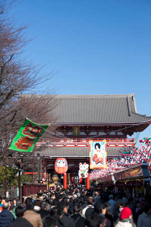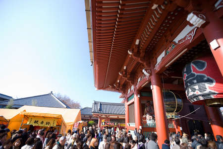 TOKYO, JAPAN - JANUARY 9: Sensoji Temple on January 9, 2016 in Tokyo, Japan. The temple is the oldest and the most popular destination in Tokyo.