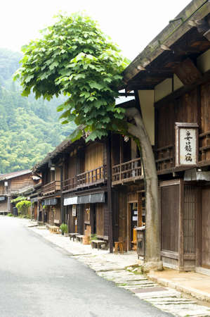 Kiso valley is the old town or Japanese traditional wooden houses Nagano Prefecture, JAPAN.