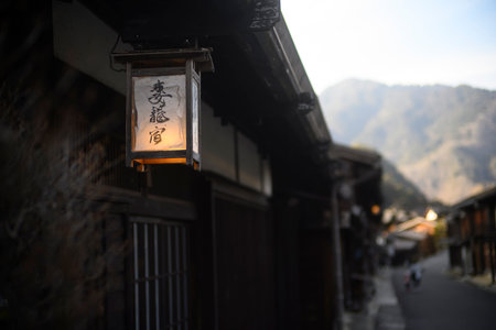 Tsumago, Japan; 1st October 2023: Streets and traditional Japanese houses at Tsumago Juku town along the Nakasendo trail in Kiso Valley, Japan.