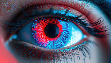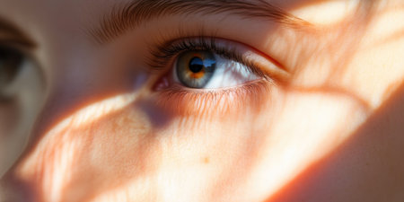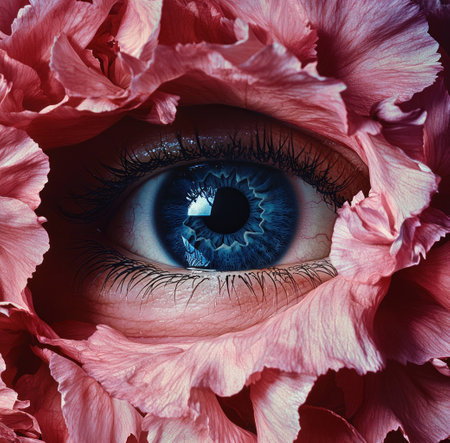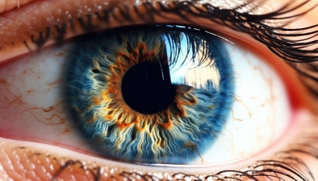 A close-up shot of a human eye, capturing intricate details of the iris with a stunning sunflower pattern. The image highlights the beauty and complexity of the human eye.