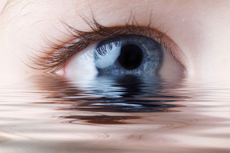 Double exposure portrait of macro eye combined with photograph of water. Be creative!
