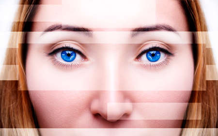Beautiful Female Eyes in Blue Paper Frame Looking at Camera