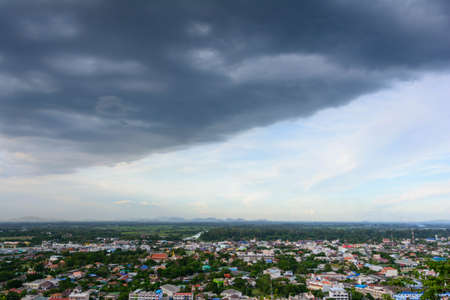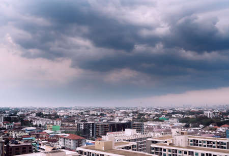 25 April 2020, sky conditions and buildings before heavy rain, gray sky overcast. The atmosphere before the rain in Bangkok, Thailand.