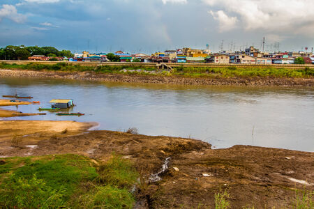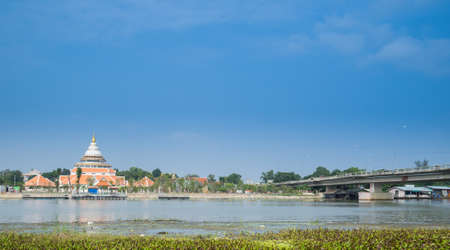 NONTHABURI,THAILAND-JULY 6: The landscape of traditional riverside city and the big buddha in Nonthaburi province taken on July 6,2015 in Thailand.