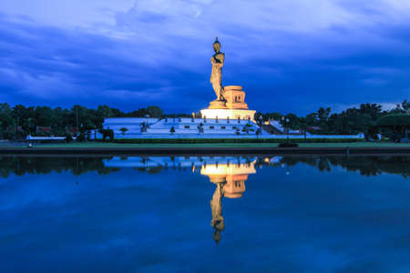 Reflection shadow of Buddha statue at Phutthamonthon(Buddhist park in the Phutthamonthon district, Nakhon Pathom Province of Thailand, west of Bangkok)